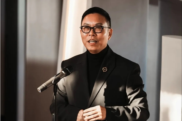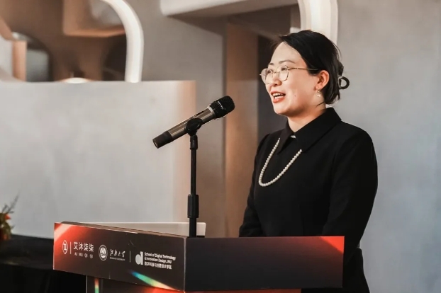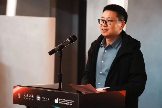 胡振宇发表致辞,未来学校将通过数智化技术赋能设计教育,让东方文化精神在现代科技中焕发新的光芒。